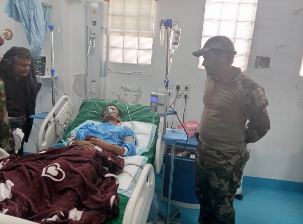 قائد اللواء الخامس دفاع شبوة يتفقد جرحى استهداف الطيران المسيّر الحوثي في مرخة العليا