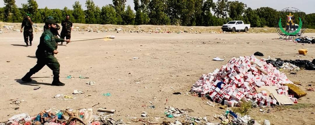 أتلفت قوات الحزام الأمني، اليوم، في العاصمة عدن، كمية كبيرة من حبوب البريجبالين المخدرة المضبوطة من قبل قوات الحزام، والتي بلغت أكثر من (18000) ألف شريط، وما يعادل (271000) حبة بريجبالين، ذو قوة (300)، وذلك بإشراف مباشر من النائب العام، القاضي قاهر مصطفى، والقائد العام لقوات الحزام الأمني، والعميد محسن بن عبد الله الوالي.