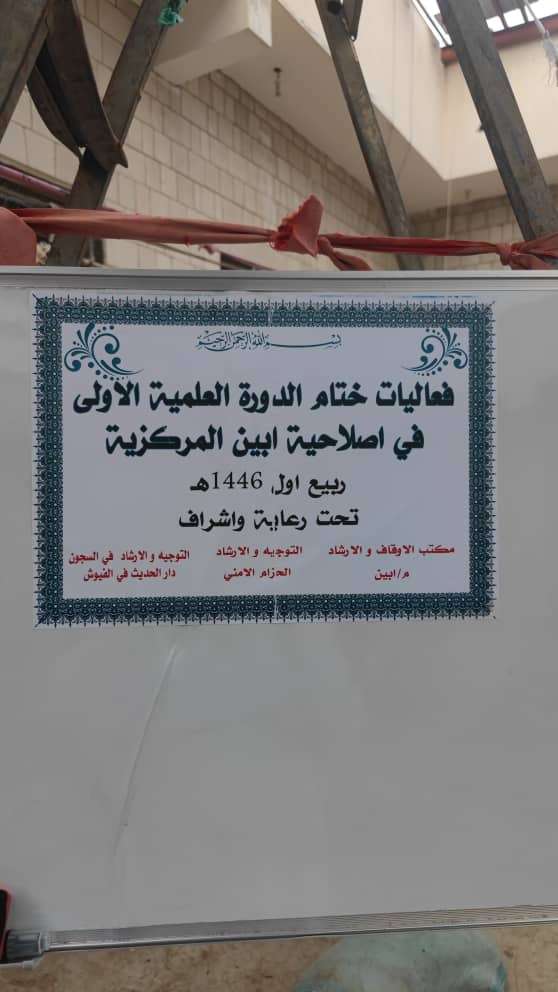 اختتمت الإصلاحية المركزية في مديرية زنجبار في محافظة أبين، اليوم، الدورة العلمية للنزلاء التي نظمتها إدارة الإرشاد الديني للحزام ا...