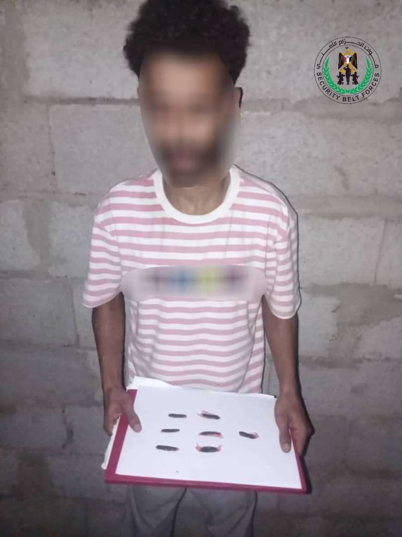 ضبطت قوات الحزام الامني بمحافظة لحج على أحد مروجي الحشيش في احدى النقاط الأمنية بمنطقة الحسيني.وأوضحت عمليات قوات الحز...