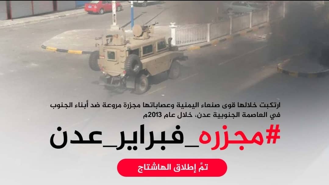 اشعل سياسيون جنوبيون مواقع التواصل الاجتماعي، وفي مقدمتها منصة (أكس)، (تويتر) سابقًا، بوسم #مجزرهفبرايرعدن . وتزامن الهاش...