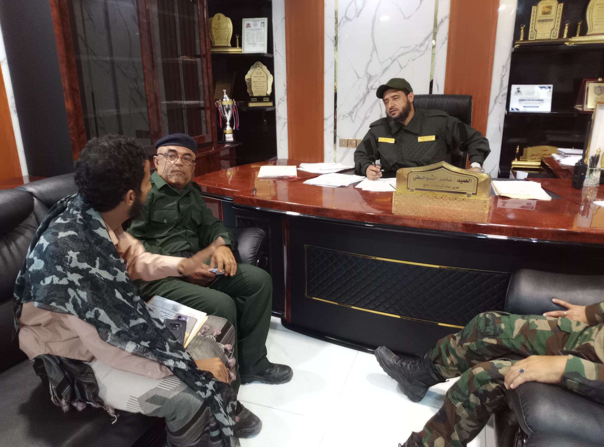 التقى مدير أمن محافظة لحج، العميد ناصر الشوحطي، صباح اليوم في مكتبه، العقيد محمد الشقعة، مدير الدفاع المدني في المحافظة، وسر...