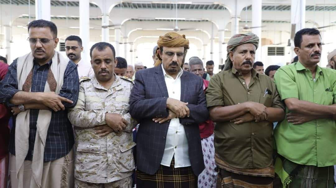 تقدّم محافظ حضرموت, مبخوت مبارك بن ماضي، عصر اليوم، جموع مشيّعي جنازة شهيد الواجب الجندي بقوات خفر السواحل الشاب أ...
