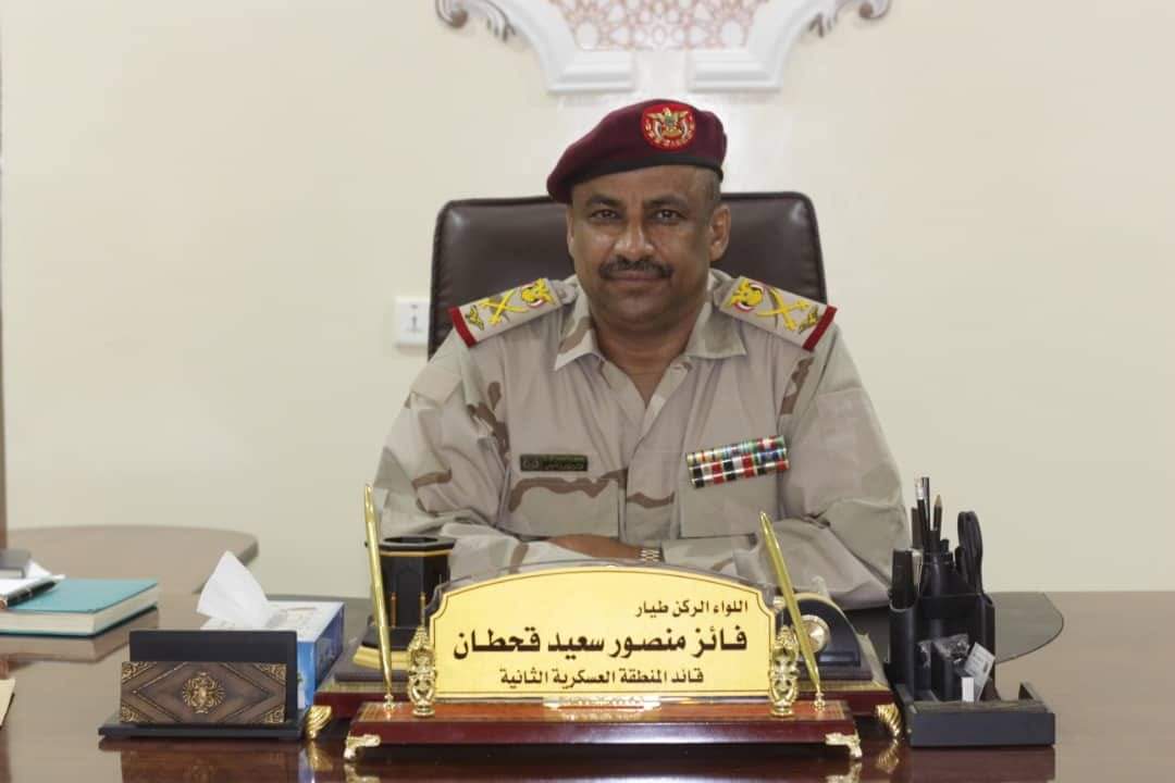 اطلع قائد المنطقة العسكرية الثانية اللواء الركن طيار/فائز منصور التميمي. اليوم. في غرب المكلا. على الجاهزية والاستعداد الق...