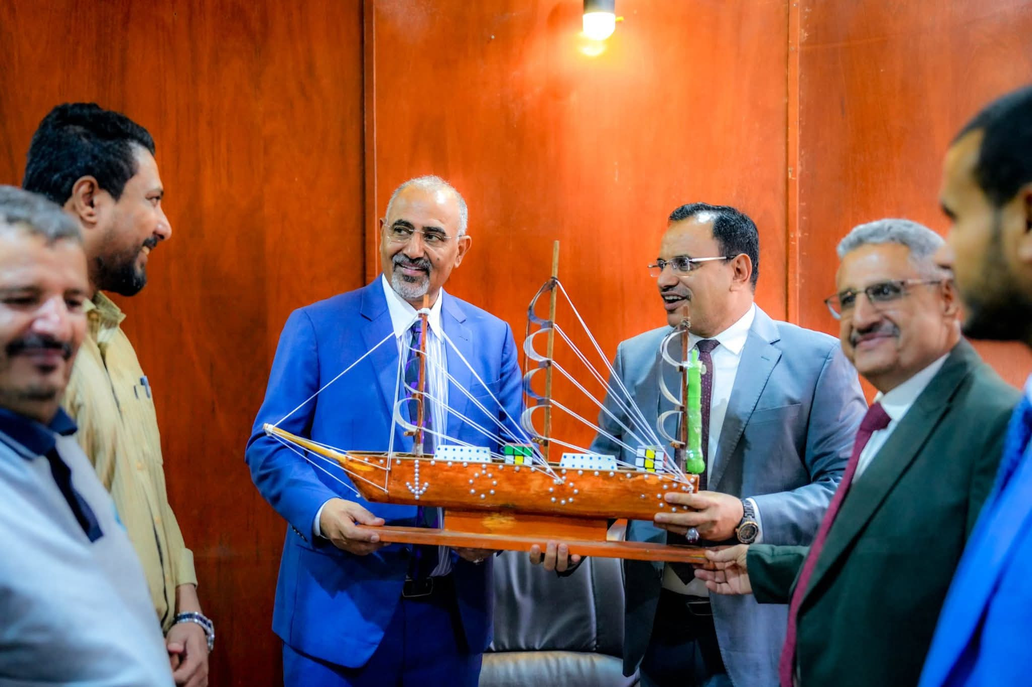كما اطّلع الرئيس القائد خلال زيارته لديوان الوزارة على سير العمل في مشروع تأهيل ميناء الاصطياد السمكي بالتواهي، الذي يجري إعادة تأهيله بتمويل من البنك الألماني للتنمية، بتكلفة إجمالية تبلغ 35 مليون دولار، بالإضافة إلى الأعمال الجارية لانتشال السفن الغارقة في الميناء، والتي شكّلت عائقاً أمام نشاطه خلال السنوات الماضية.