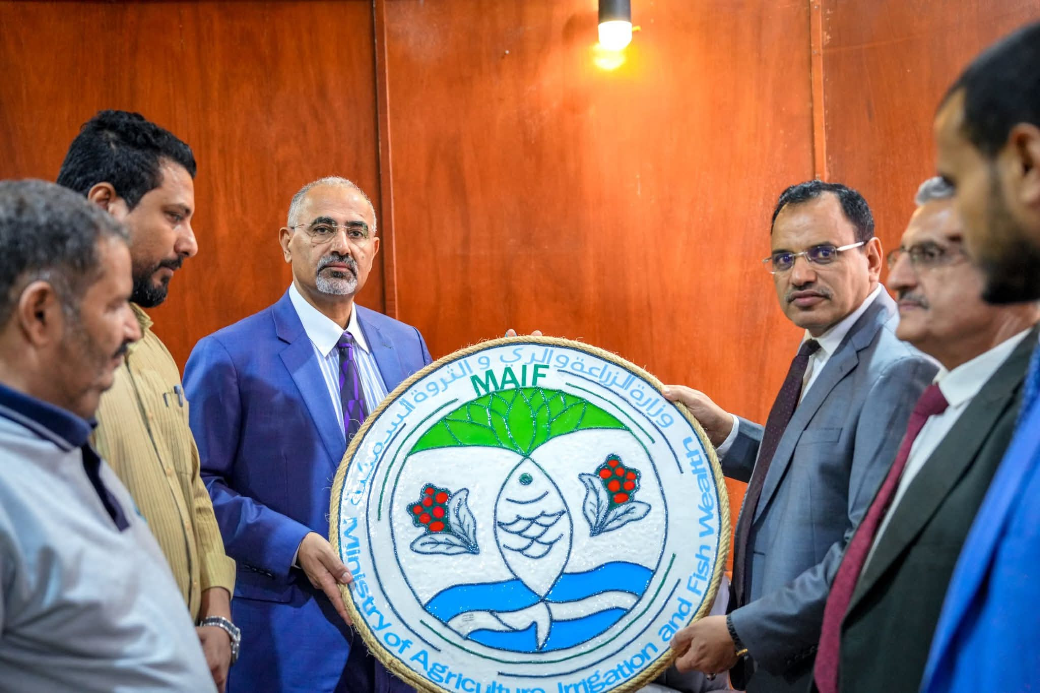 وخلال الزيارة، طاف الرئيس القائد في ديوان الوزارة، واطّلع على سير العمل في قطاعاتها وإداراتها، واستمع من الوزير السقطري والوكلاء إلى شرحٍ موجزٍ حول جملة المشاريع التي نفذتها الوزارة بدعم من الشركاء الدوليين، ولا سيما مشاريع البُنى المؤسسية، وأبرزها المختبرات المركزية، والمركز الإقليمي لمكافحة الجراد الصحراوي، والمختبر المركزي البيطري، بالإضافة إلى المشاريع قيد التنفيذ، وأهمها تأهيل عدد من مراكز الإنزال والموانئ السمكية في عموم المحافظات الساحلية.