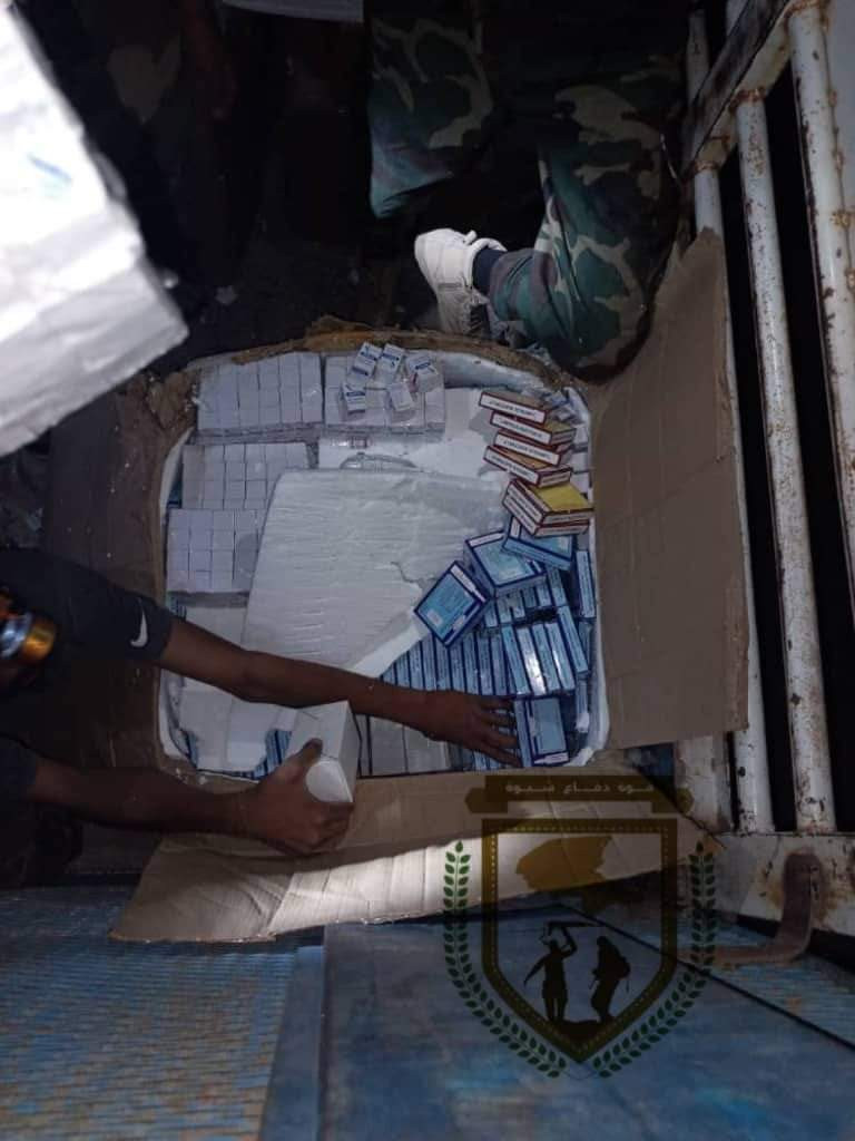 حيث تم ضبط سائق الشاحنة والكمية المهربة وجاري استكمال إجراءات إحالته مع المضبوطات الى الجهات المختصة