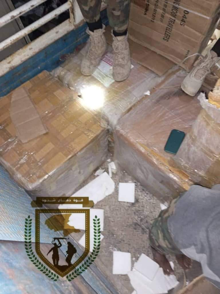 تمكنت قوات دفاع شبوة اللواء الثاني في احد مداخل مدينة عتق من إحباط عملية تهريب كمية كبيرة من الادوية المهربة كانت في طريقها الى عاصمة المحافظة عتق, وذلك على متن شاحنة نقل نوع (دينة) بعد اجراءات التفتيش كانت الكمية مخبأة بإحكام اسفل الحمولة التي هي عبارة عن مواد بلاستيكية.