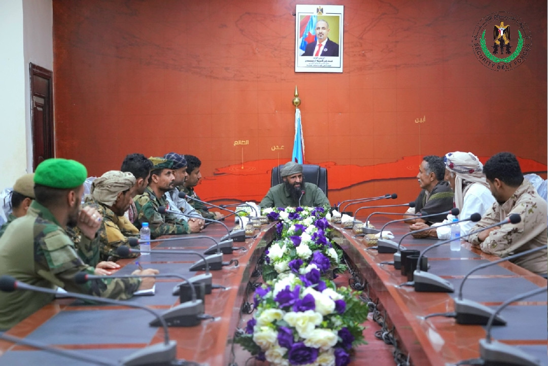 حضر اللقاء، العميد معتز الحوشبي رئيس عمليات الحزام الأمني، والعقيد صدام السرحي رئيس عمليات حزام أبين، وعدد من قادة وضباط الحزام الأمني.