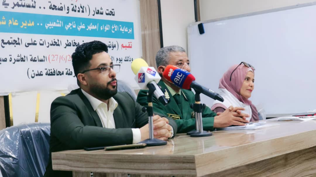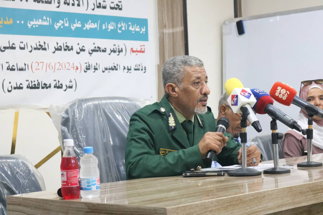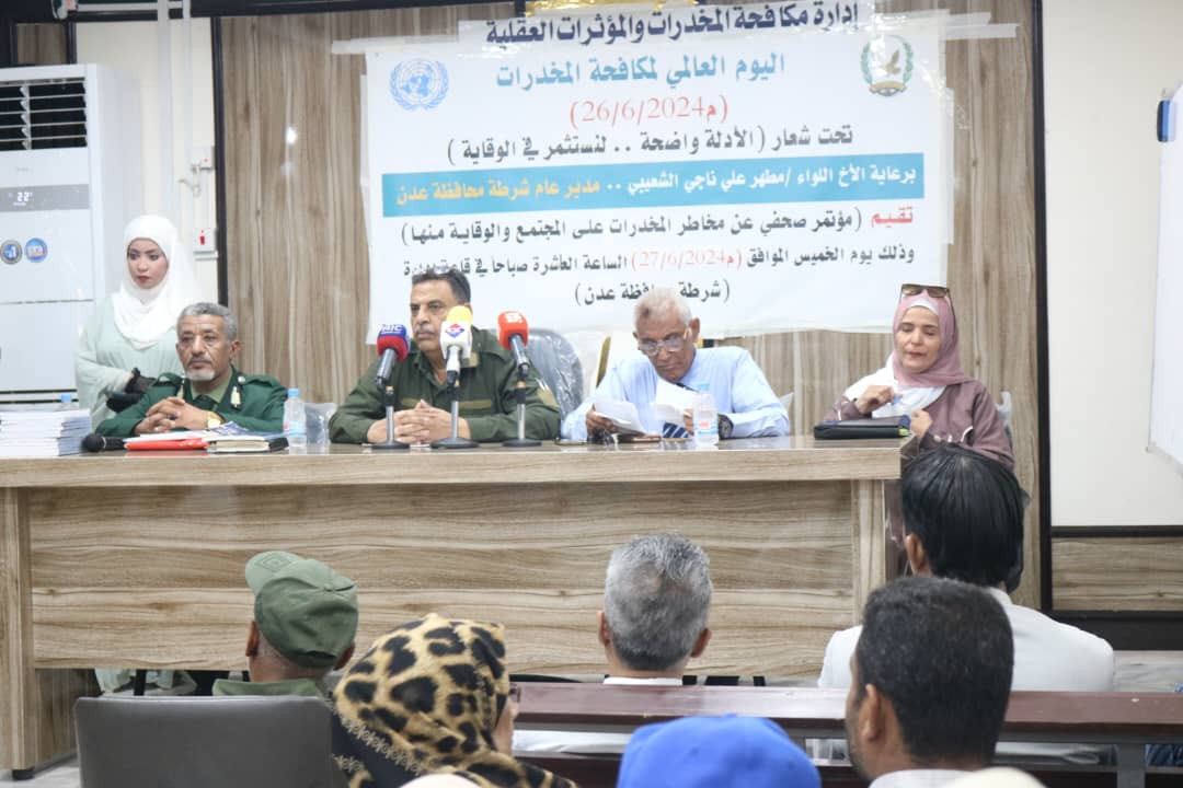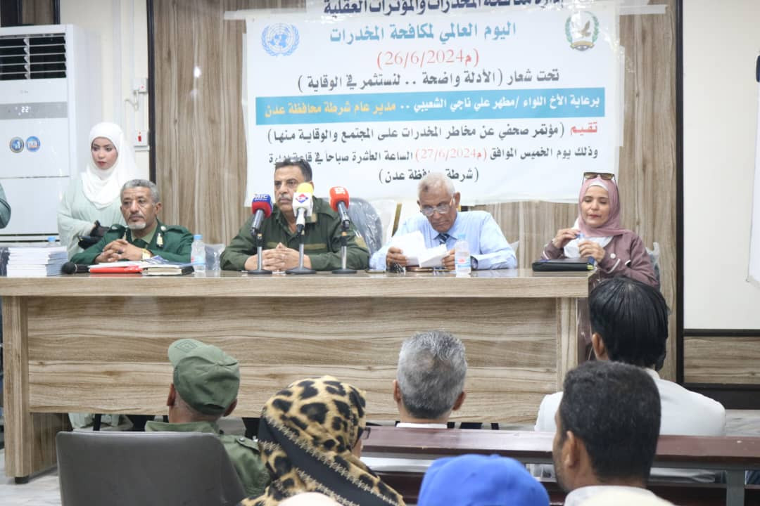 أمن العاصمة عدن يعقد مؤتمرا صحفيا توعويا بمناسبة اليوم العالمي لمكافحة المخدرات