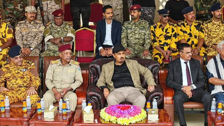 ونقل المحافظ تحيات القيادة السياسية، ممثلة في مجلس القيادة الرئاسي، وتهانيهم للخريجين، مؤكدًا على الاهتمام الكبير بتطوير القدرات القتالية للقوات المسلحة والأمن.