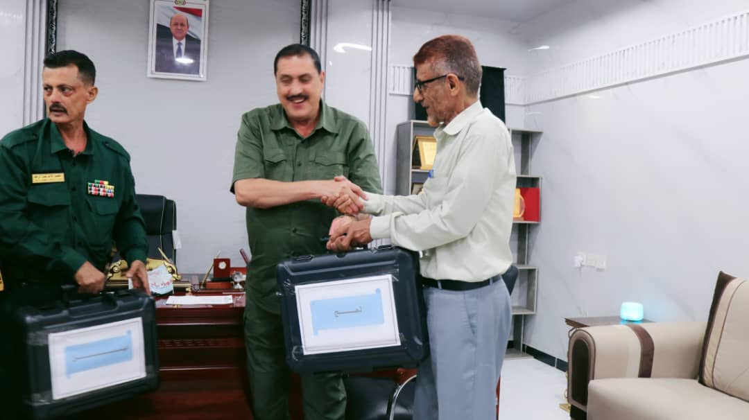 مدير أمن العاصمة عدن يسلم حقائب خاصة بالتكنيك الجنائي لمحافظات لحج وابين والضالع