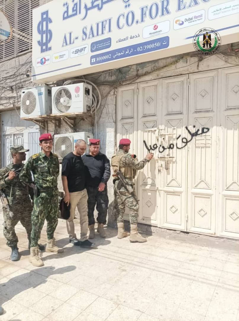 وأكد مصدر عملياتي بحزام عدن أن قوات الحزام بالتنسيق مع نيابة الأموال العامة الثانية المختصة بمكافحة الفساد وبحضور مندوب من قبل البنك المركزي، قامت بتنفيذ نزول ميداني لعدد من المديريات من أجل إغلاق المصارف المخالفة.