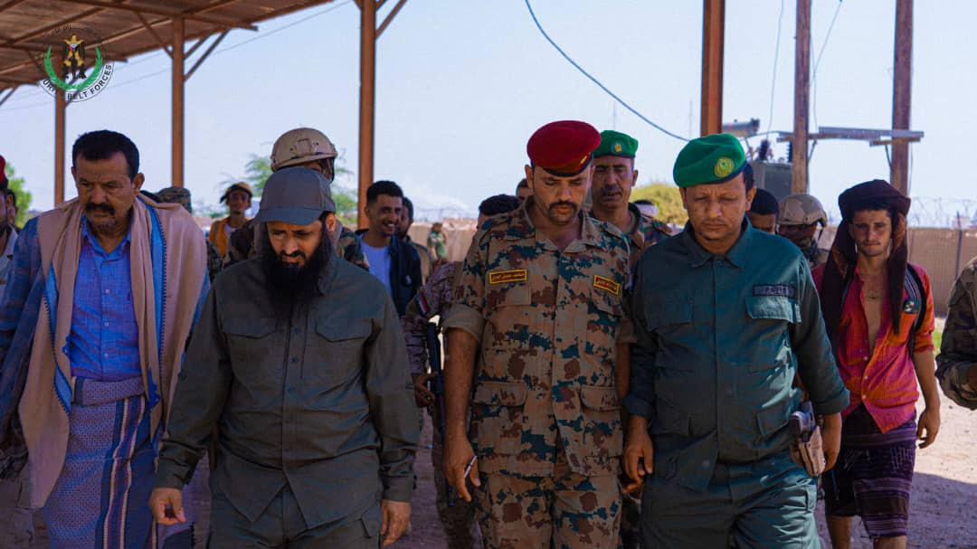 رافقه في الزيارة مدير إدارة الإعلام بقوات الحزام رشدي العمري، والنقيب صالح الحوشبي قائد الكتيبة الثانية حماية في لواء الاحتياط.