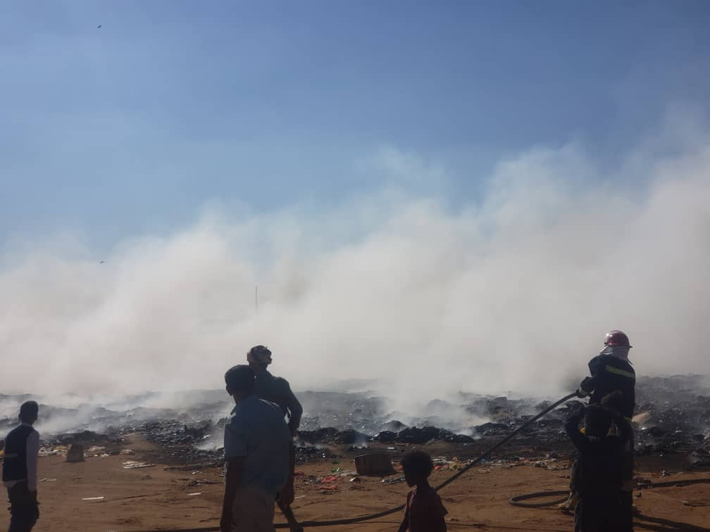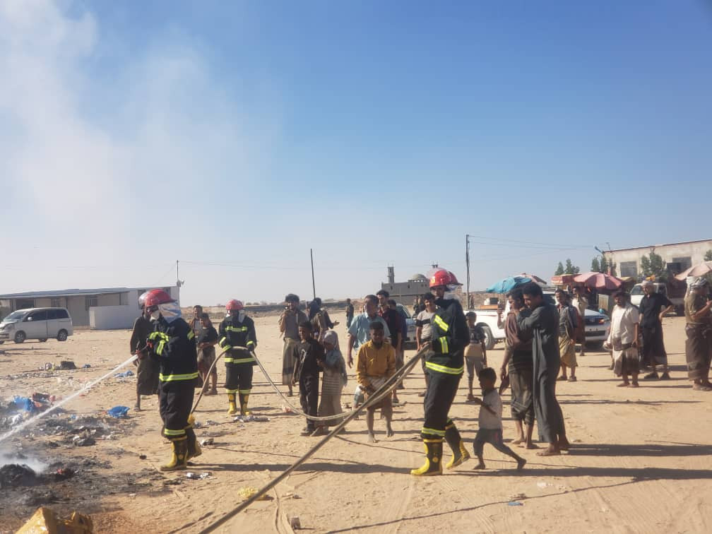 الدفاع المدني بشبوة يخمد حريقاً بجانب سوق القات المركزي بمدينة عتق
