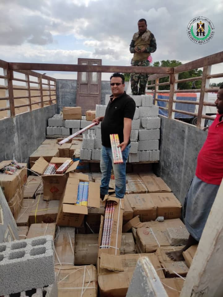 قوات حزام لحج تضبط كمية من الالعاب النارية المهربة