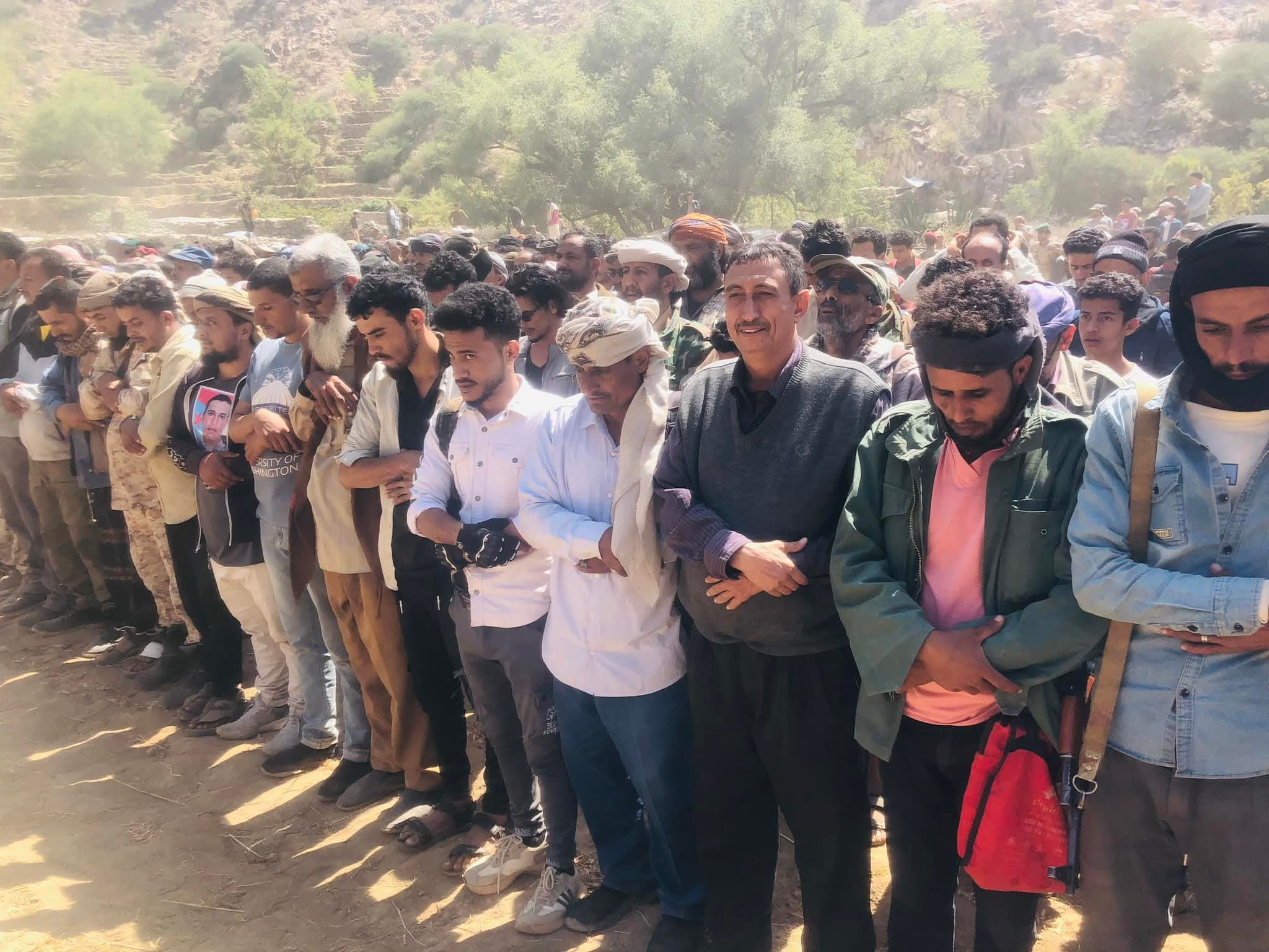 الآلاف من أبناء الضالع يشيعون جثمان الشهيد محمد عبدالحميد الكاش إلى مثواه الأخير بمنطقة لودية مديرية الشعيب