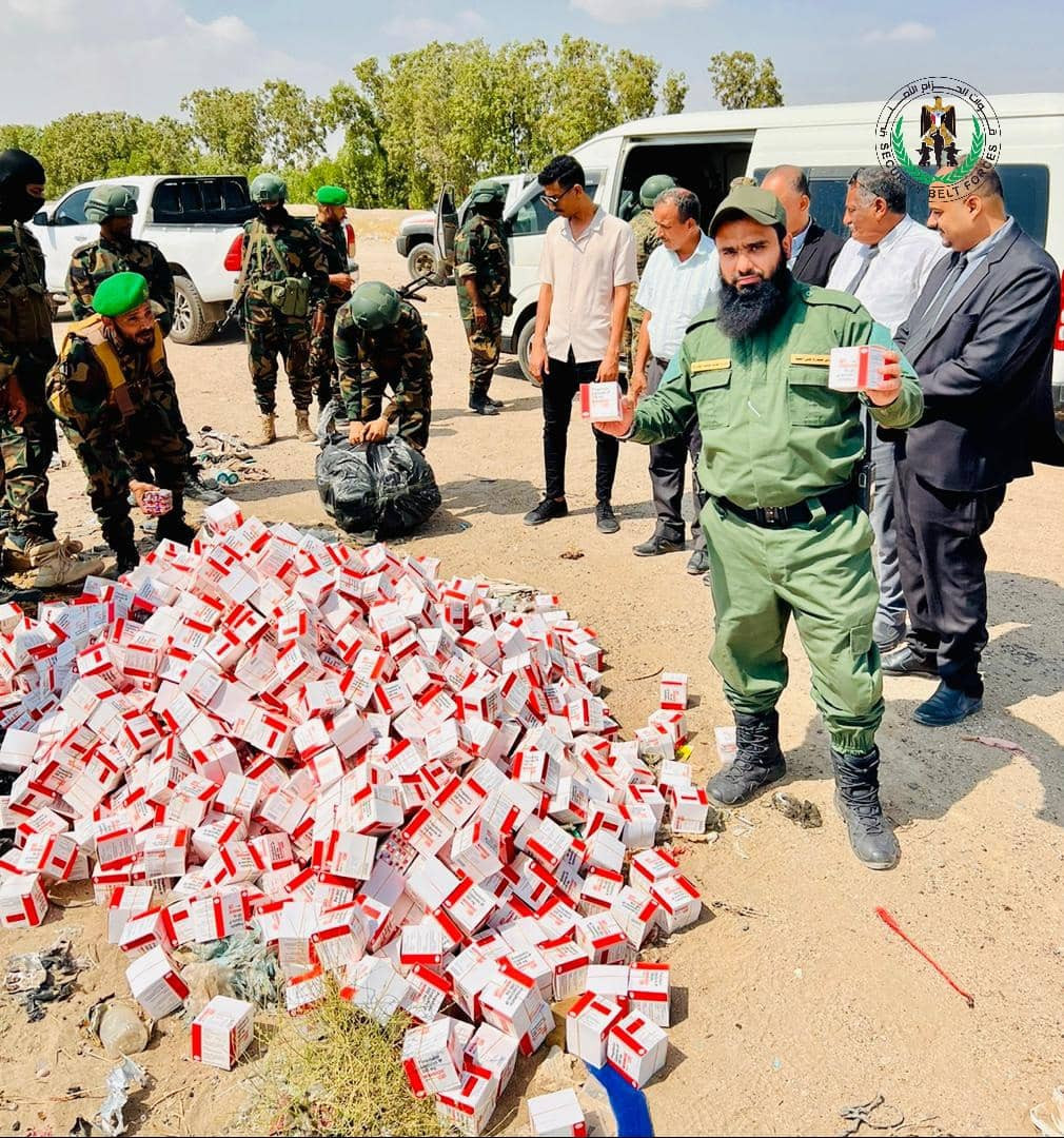 أتلفت قوات الحزام الأمني، اليوم، في العاصمة عدن، كمية كبيرة من حبوب البريجبالين المخدرة المضبوطة من قبل قوات الحزام، والتي بلغت أكثر من (18000) ألف شريط، وما يعادل (271000) حبة بريجبالين، ذو قوة (300)، وذلك بإشراف مباشر من النائب العام، القاضي قاهر مصطفى، والقائد العام لقوات الحزام الأمني، والعميد محسن بن عبد الله الوالي.