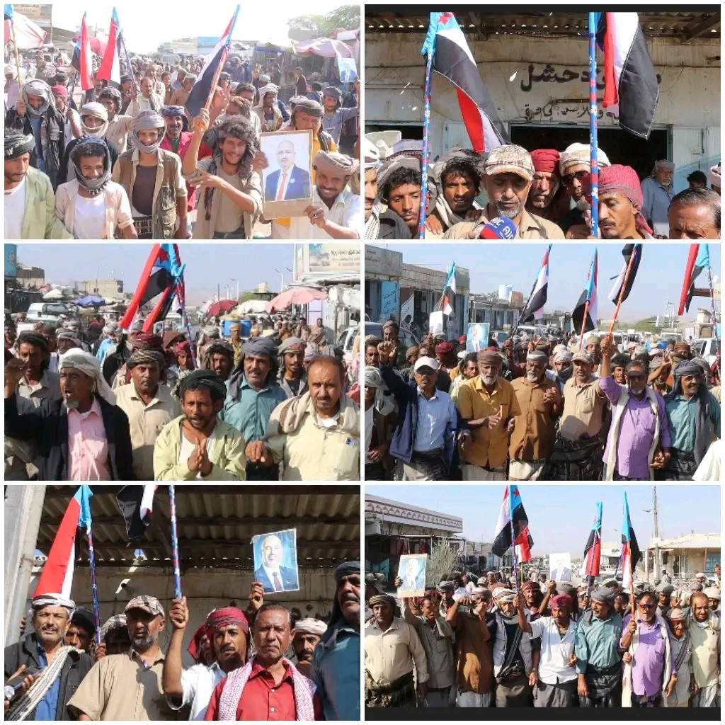 ورفع المشاركون في المسيرة الأعلام الجنوبية والشعارات المؤيدة للقوات المسلحة الجنوبية، مؤكدين اصطفافهم خلف القيادة السياسية والعسكرية في معركة استعادة الأمن والاستقرار في وادي حضرموت.