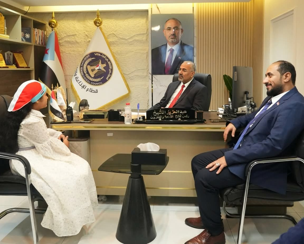 وعلى هامش، زيارته للقطاع، التقى الرئيس الزُبيدي، الطفلة منيرة رامي بن شجاع، حفيدة الشهيد العميد صالح بن شجاع، التي ظهرت في مقطع مرئي مؤثر بثّته منصة "عدن المستقلة الإنجليزية"، وأثارت بتعبيراتها الصادقة تفاعلًا واسعًا وتعاطفًا كبيرًا.