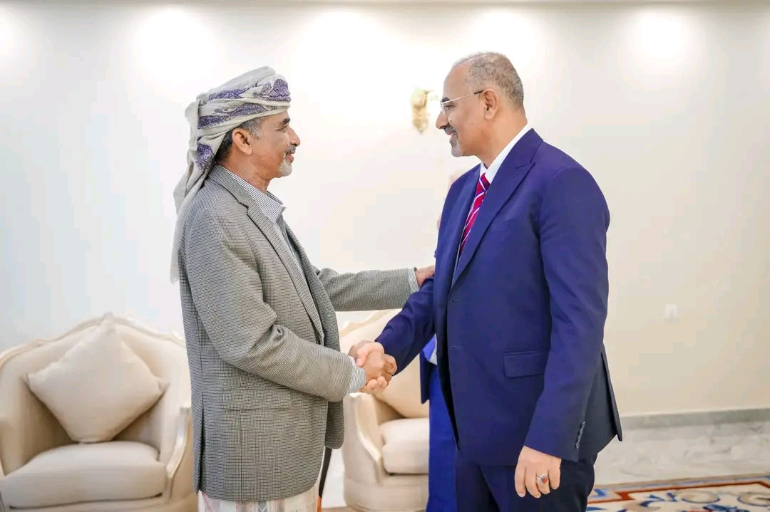 الرئيس الزُبيدي يبحث مع الشيخ البركاني سُبل تضافر الجهود لتعزيز الأمن والاستقرار في المحافظات المحررة